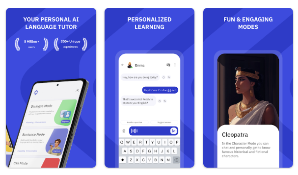Some AI tutor apps use advanced video and audio technology that allow you to see and hear your target language in real time