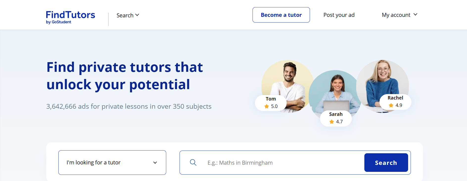 - Tutors are based across the UK, allows students to find local private teachers