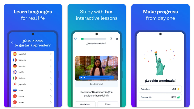 Busca apps que midan progreso útil (palabras dominadas, objetivos semanales) y no solo “puntos”.