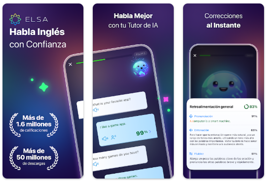 ELSA Speak: IA de pronunciación con feedback fonético detallado.