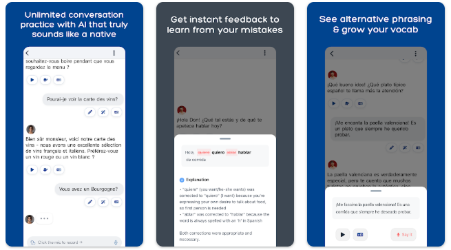 Cuando hablamos de aplicación interactiva de aprendizaje de inglés no nos referimos a un curso en vídeo “de fondo”, sino a una app que te hace participar en cada minuto: hablas y recibes correcciones, completas diálogos, resuelves retos, escribes y obtienes feedback inmediato. Este formato activa la memoria, reduce el tiempo “muerto” y, con sesiones cortas pero constantes, acelera el progreso de alumnos y estudiantes con poco tiempo.