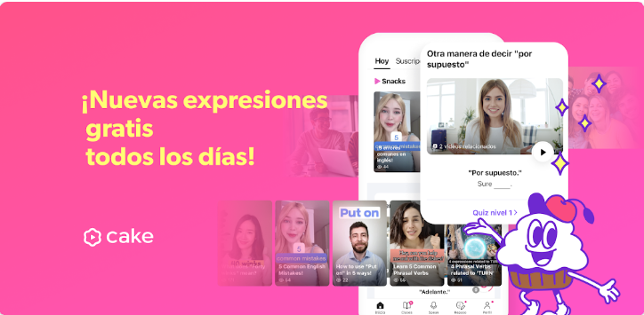 Cake te hace hablar desde el primer día con ejercicios de “shadowing”, repetición guiada y diálogos cotidianos. Incluye clips reales con subtítulos para practicar ritmo y entonación de manera natural. Muy útil para soltarte y ganar agilidad oral con sesiones cortas diarias.