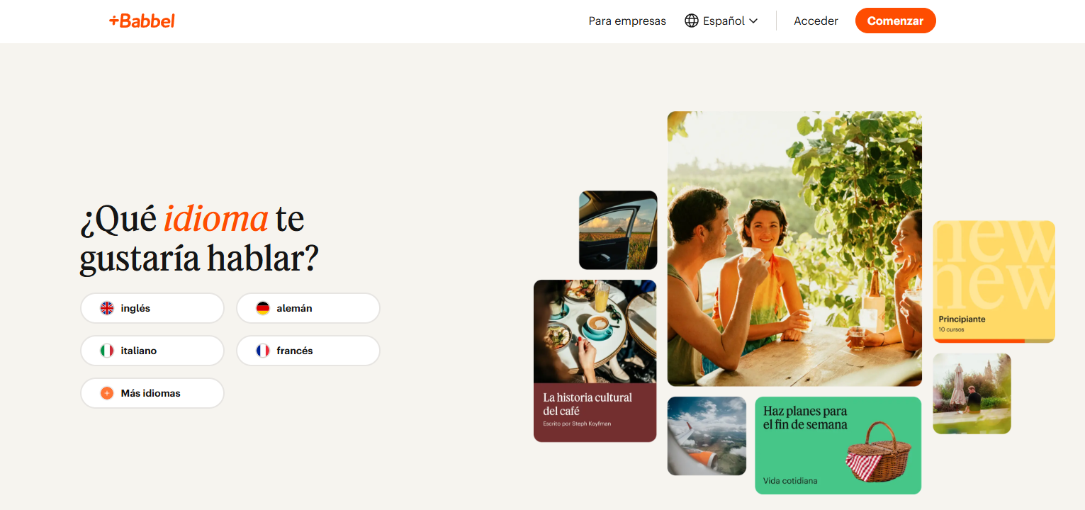 Babbel no es solo su app; su versión Babbel Live es una plataforma profesional con clases grupales en directo impartidas por profesores cualificados.