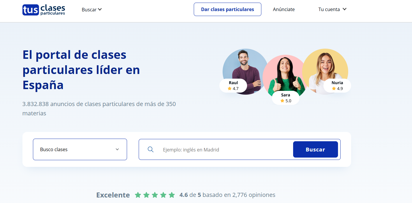 Tusclasesparticulares, donde puedes acceder a profesores especializados en cada nivel.