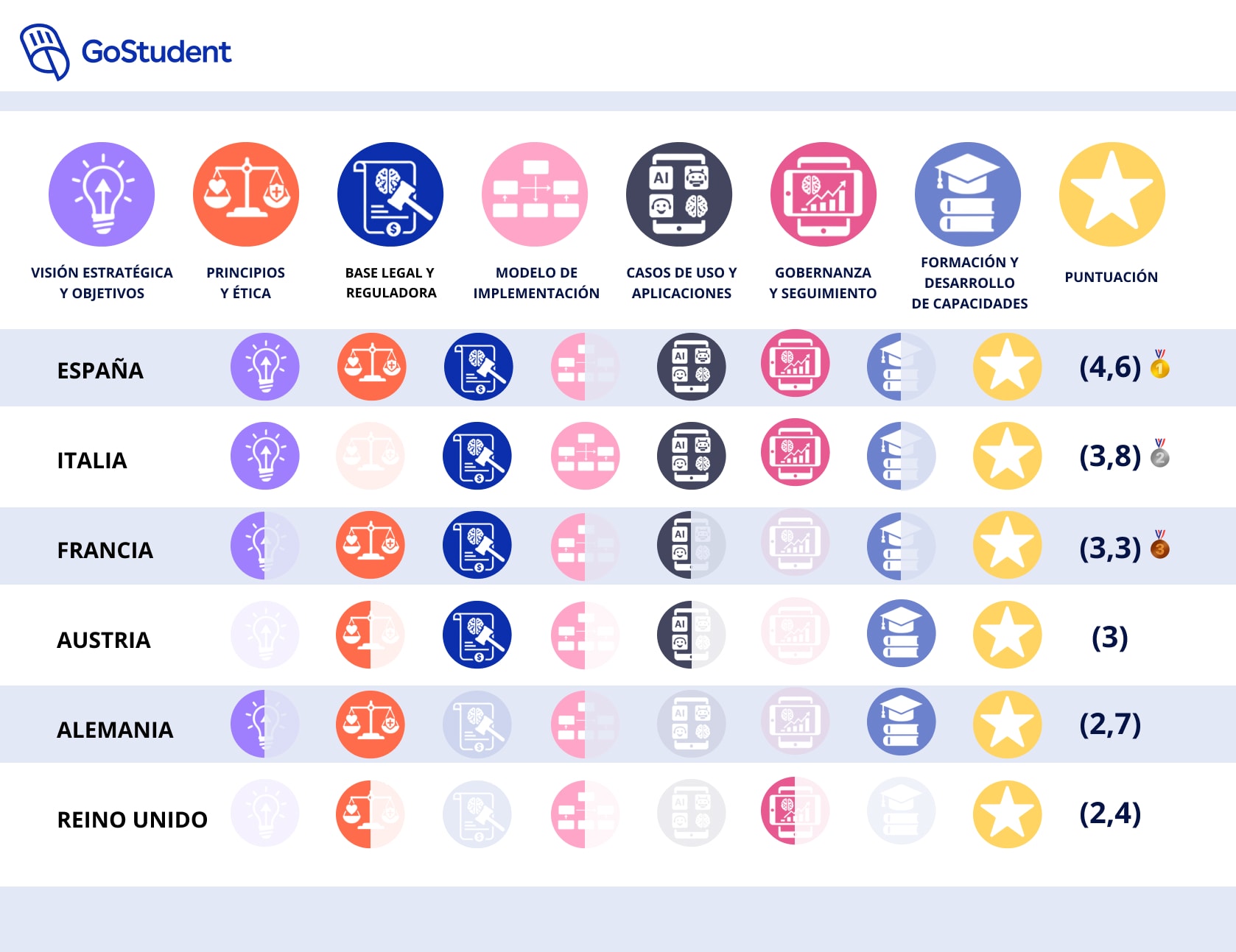 También incluye tres menciones honoríficas adicionales por su labor en el desarrollo de capacidades en IA: Países Bajos, Estonia y Polonia, que han demostrado iniciativas prometedoras en cuanto a la integración educativa de la inteligencia artificial.