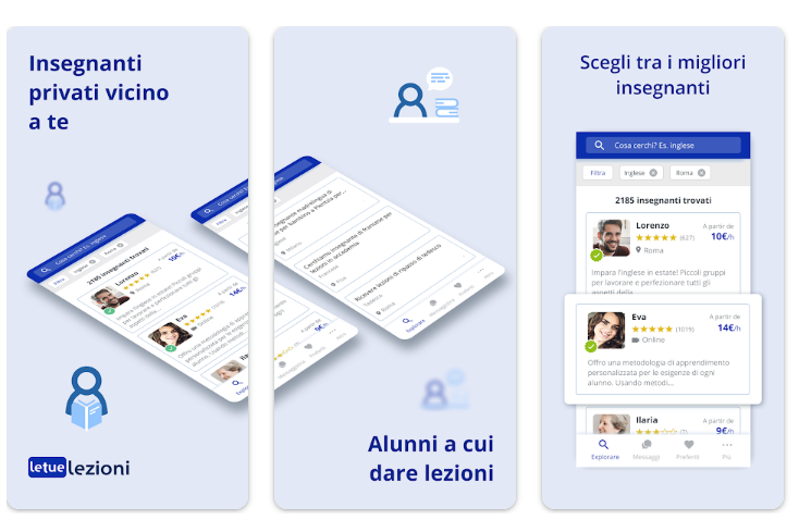 Letuelezioni è la piattaforma italiana perfetta per trovare tutor privati, sia per lezioni in presenza che online. A differenza delle app di autoapprendimento, con Letuelezioni puoi scegliere il tuo tutor di spagnolo in base a prezzo, disponibilità, recensioni di altri studenti e anche alla zona, se preferisci incontrarti di persona.