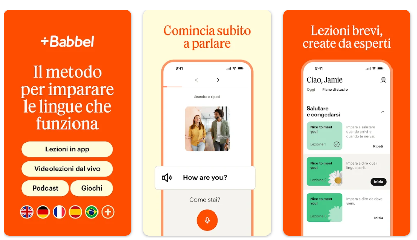 Babbel si distingue da Duolingo per un approccio più strutturato e orientato alla comunicazione reale. Le lezioni sono brevi (10-15 minuti) ma dense, con dialoghi contestualizzati, esercizi di pronuncia e una progressione grammaticale chiara. È progettata da linguisti e tiene conto delle specificità della lingua di partenza: la versione per italiani è calibrata sugli errori tipici di chi ha l'italiano come madrelingua.