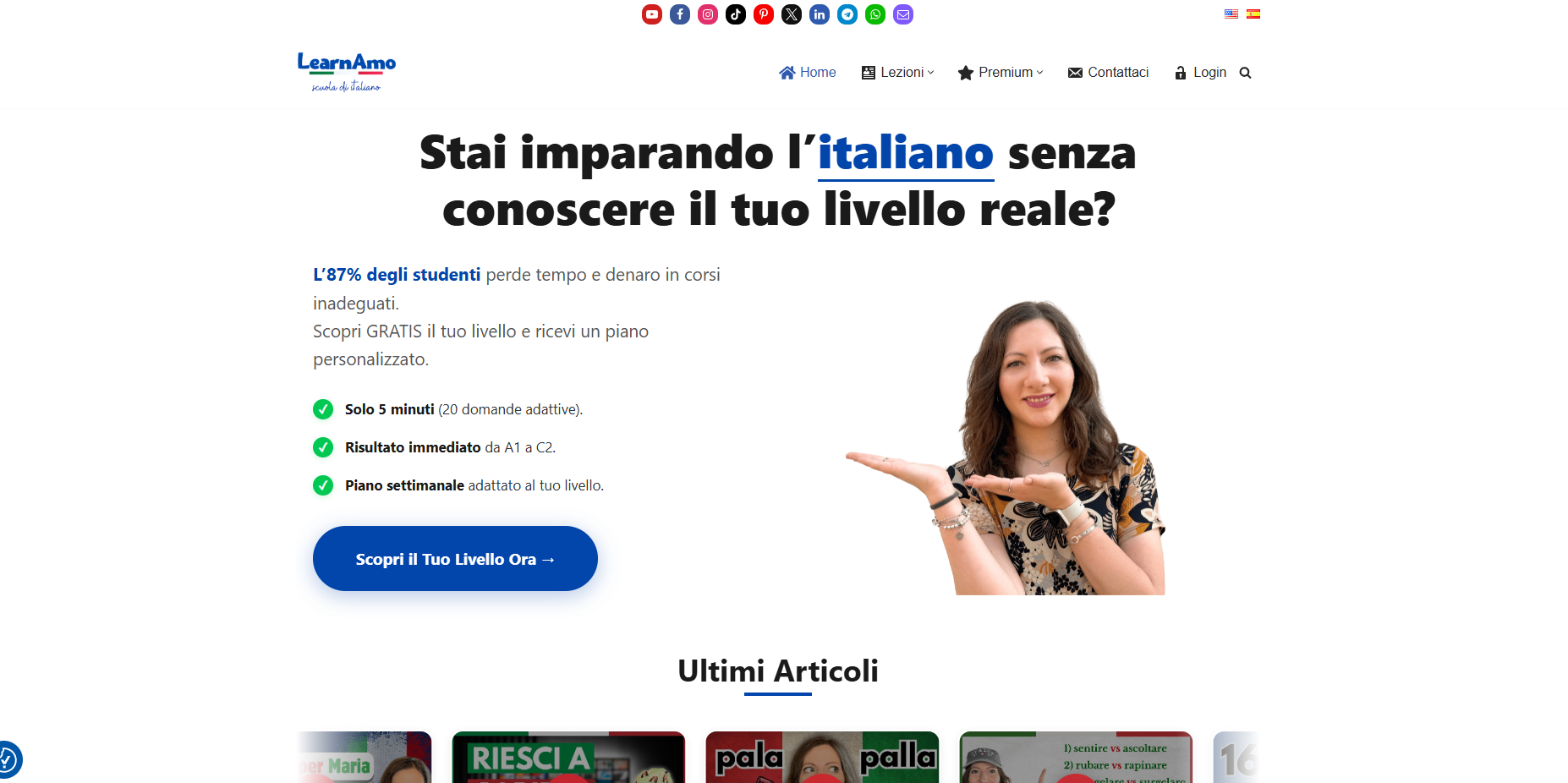 Cos’è: una piattaforma per imparare italiano online con lezioni suddivise per livelli, che includono video, spiegazione scritta ed esercizi automatici.