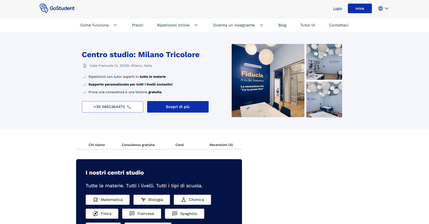 La sede GoStudent di Milano Tricolore offre lo stesso approccio strutturato e personalizzato, in una zona centrale e facilmente raggiungibile da diverse aree della città. È un ambiente ordinato e stimolante, pensato per favorire concentrazione e continuità.