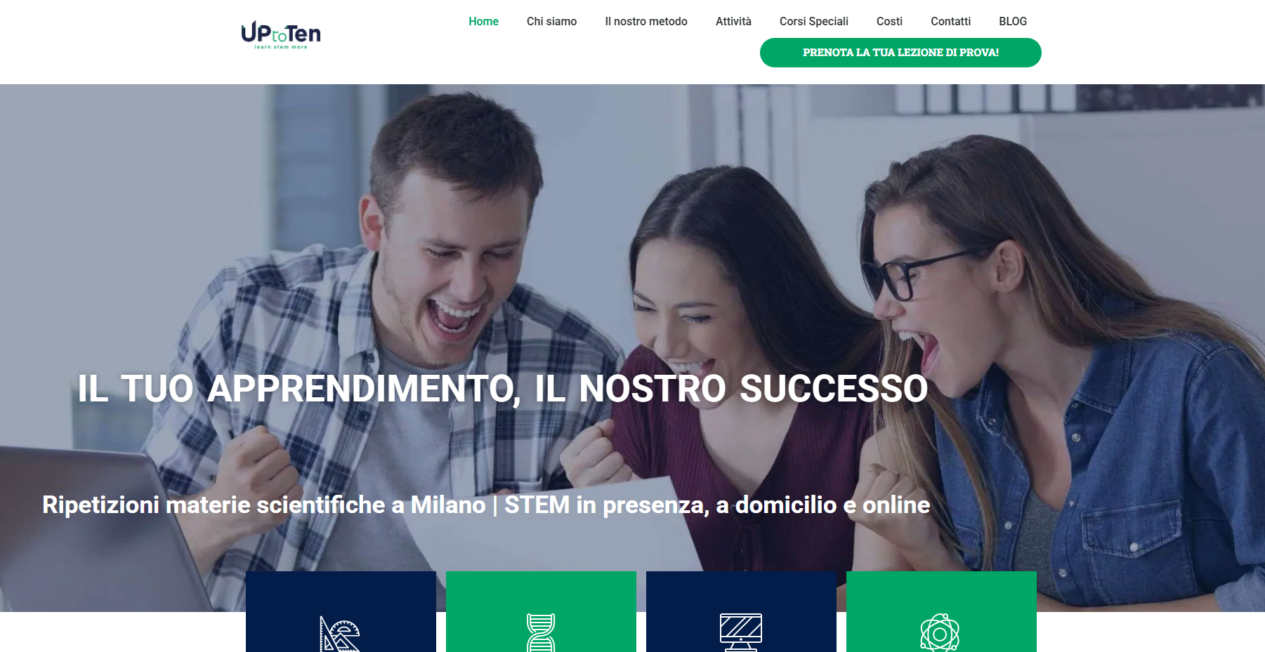 Up to Ten è un centro specializzato soprattutto nelle materie scientifiche come matematica, fisica e informatica. L’approccio è molto pratico e orientato agli esercizi, con l’obiettivo di sbloccare difficoltà specifiche e rafforzare le competenze.